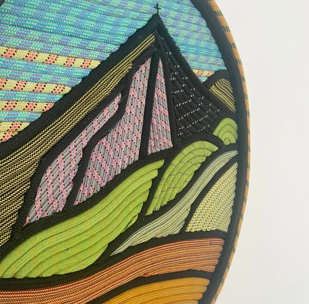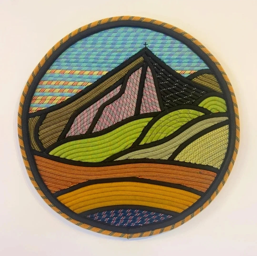 This piece of Rope Art uses upcycled old climbing ropes to depict Ireland’s highest mountain, Carauntoohil in Co. Kerry. From the Hag’s Glen, it’s dark steep slopes are represented, with Lough Gouragh in the foreground. The ropes used are decommissioned climbing ropes, each with a history of their own.
