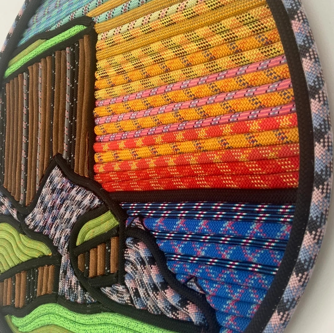 This piece of Rope Art depicts the 200m high cliffs at Fairhead in Co.Antrim. These column-like cliffs are made with strands of rope illustrating their spectacularly impressive appearance, dominating the evening sky. The ropes used are decommissioned climbing ropes each with a climbing history of their own. The title is a nod to the climbing community who regularly climb the cliffs at Fairhead into the fading light of the day.