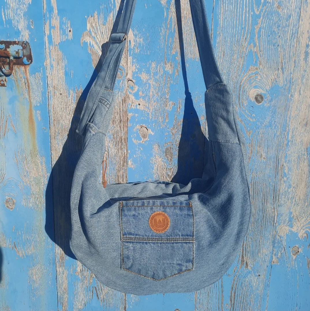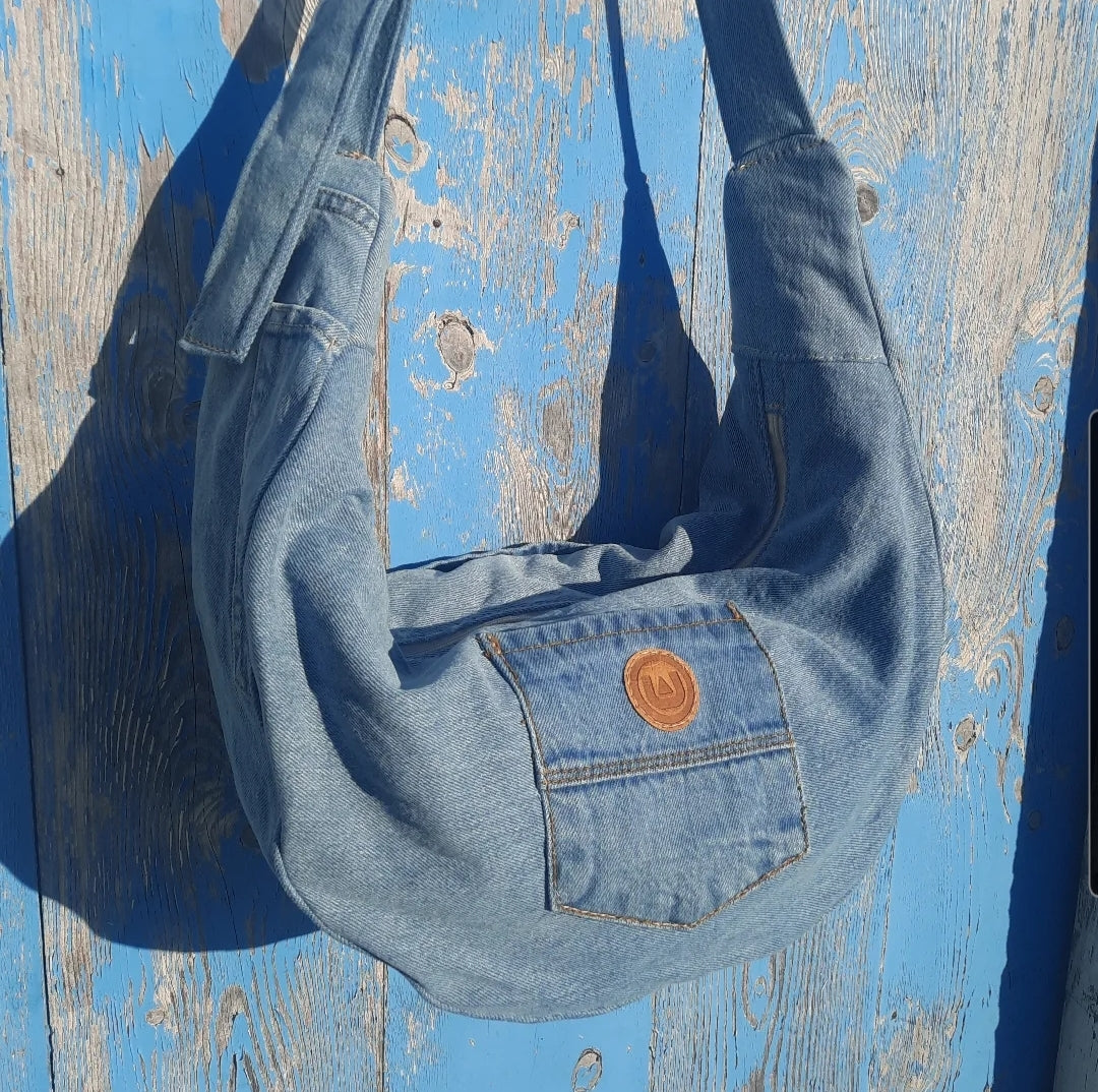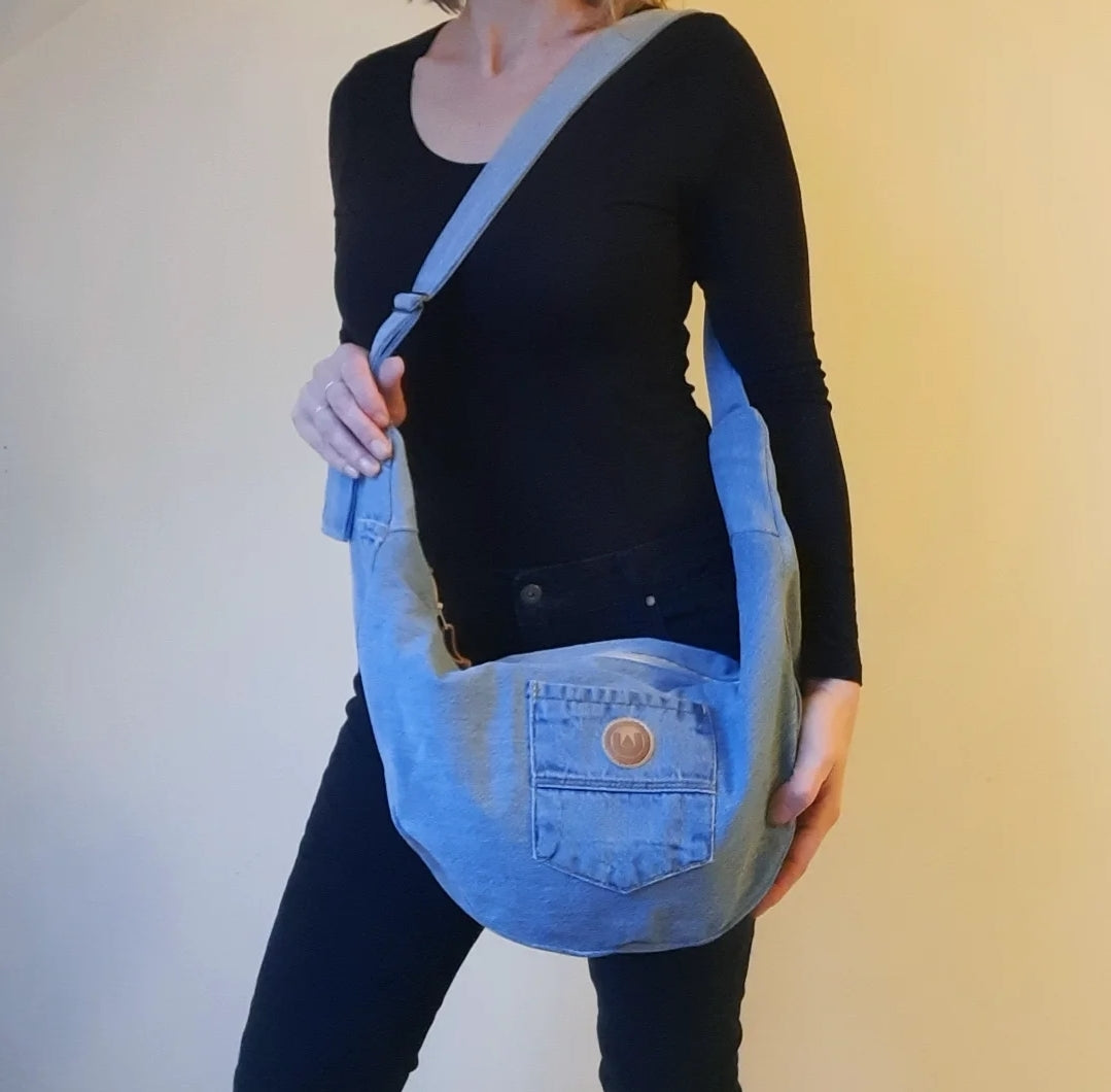 Upcycled blue denim jeans - turned into a gorgeous, large, slouchy bag. The denim is so soft and this is such a comfortable bag to wear.
